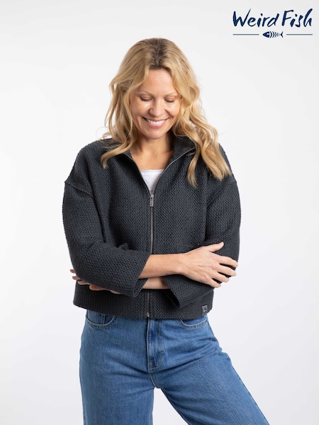 Weird Fish Blue Emily Full Zip Cropped Macaroni Jacket