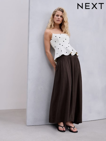 Chocolate Brown Dropwaist Linen Blend Maxi Skirt