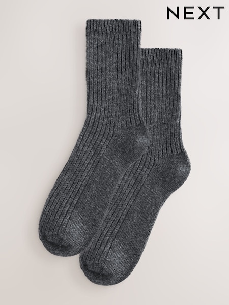 Grey Wool Blend Ribbed Ankle Socks 2 Pack