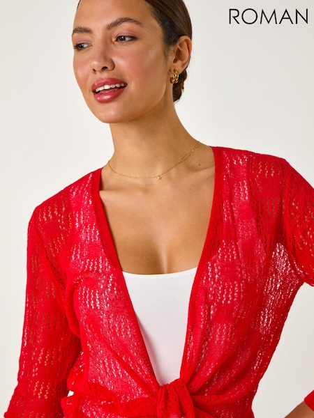 Roman Red Textured Light Knit Shrug