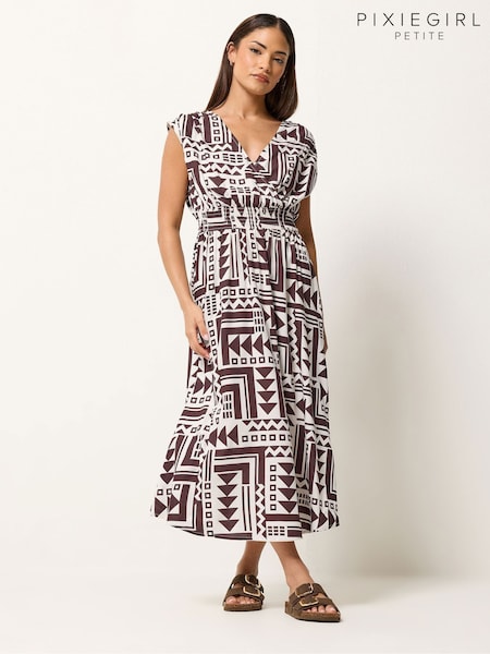 PixieGirl Petite Brown Abstract Wrap Front Midi Dress