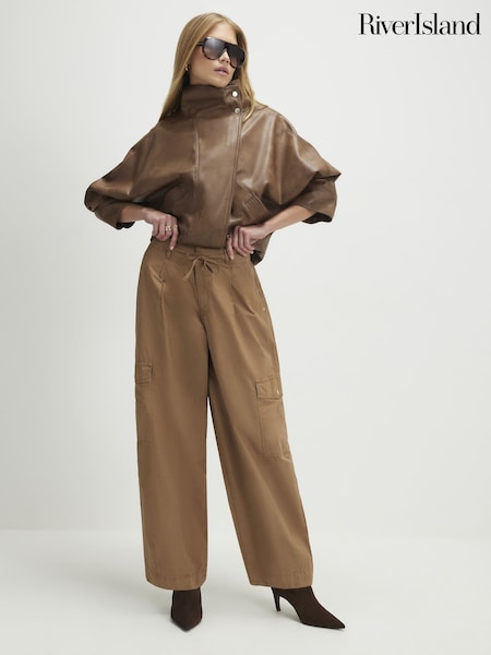 River Island Dark Brown Elasticed Waist Balloon Trousers