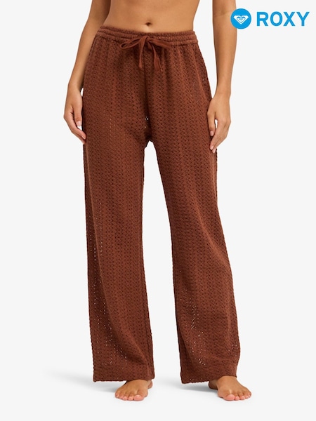 Roxy Brown Cappucino Mood Moving Crochet Texture Beach Trousers
