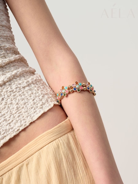 Aela Gold Tone Bright Flower Stretch Bracelet
