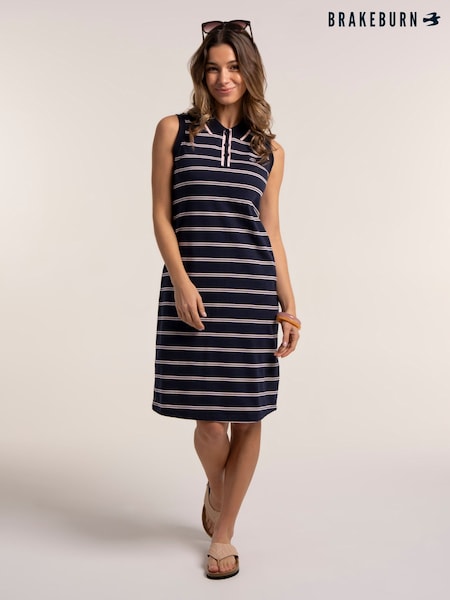 Joules Girls' Orla Navy & White Striped Short Sleeve Polo Shirt Dress