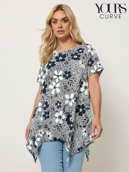 Yours Curve Blue Hanky Hem Blouse