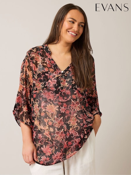 Evans Black Button Detail Blouse