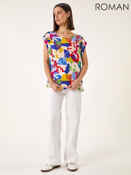 Roman Blue Abstract Print Shell Top