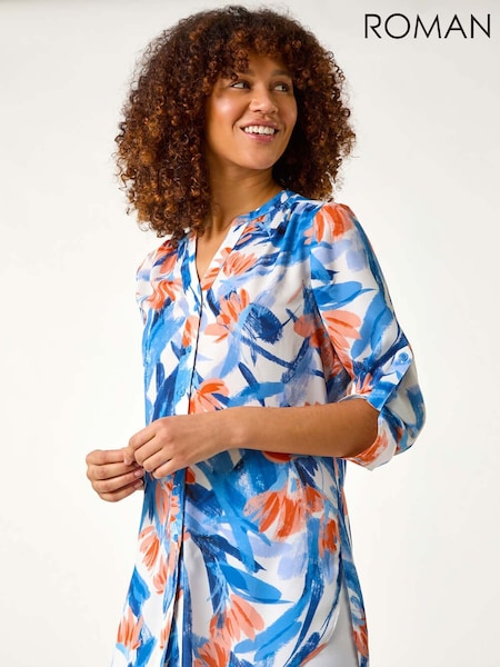 Roman Blue Floral Print Longline Blouse