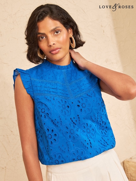 Love & Roses Pale Blue Cross Hatch Paisley Flutter Sleeve Blouse