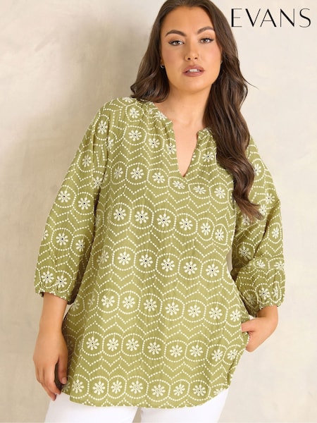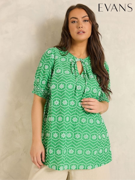 Yours Curve Green Broderie Anglaise Tie Front Peplum Top