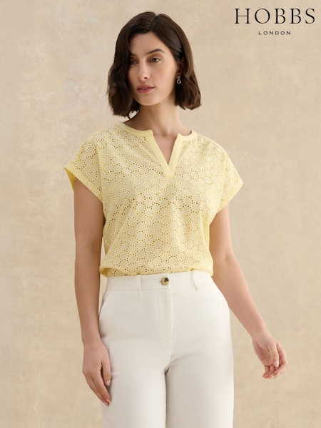 Hobbs Yellow Joanna Broderie Top