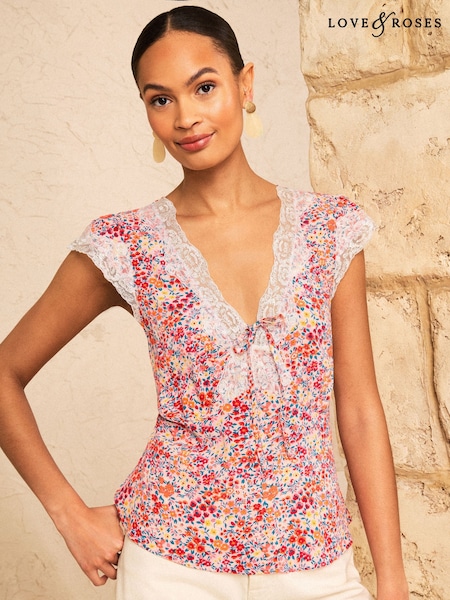 Love & Roses Ivory Printed Lace Detail Blouse