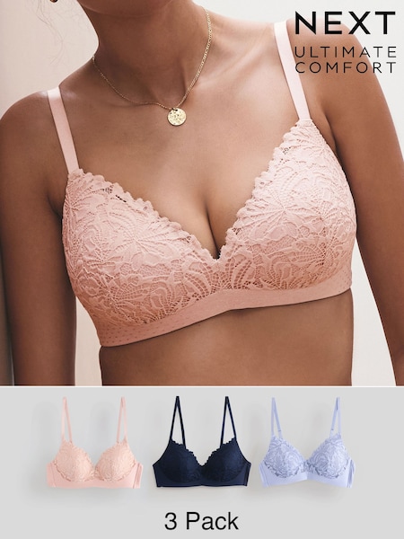 Navy/Blue/Light Pink Pad Non Wire Lace Ultimate Comfort Bras 3 Pack
