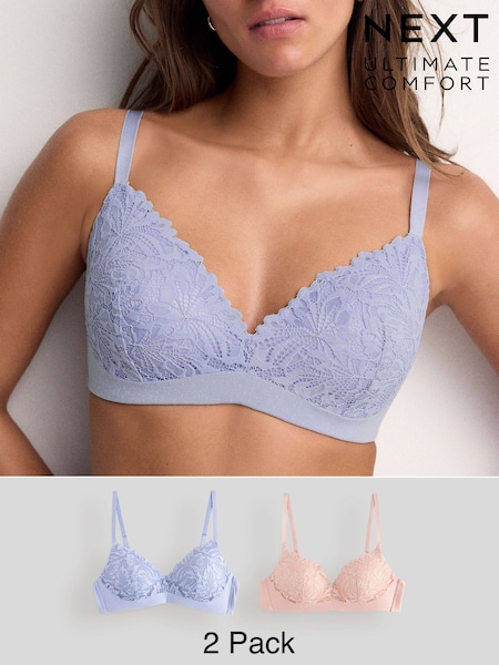 Blue/Light Pink Pad Non Wire Lace Ultimate Comfort Bras 2 Pack