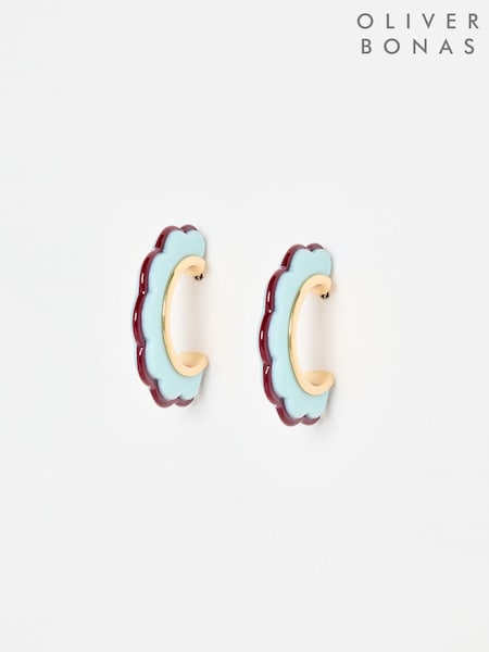 Oliver Bonas Blue Belle Scalloped Hoop Earrings