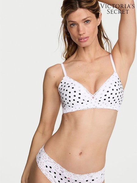 Victoria's Secret White Polka Dot Lightly Lined Non Wired Cotton Lace Trim Bra