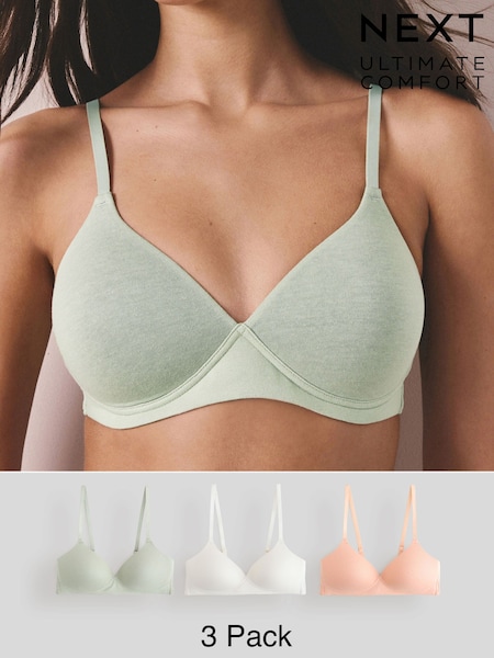 Green/Orange/Cream Pad Non Wire Cotton Blend Ultimate Comfort Bras 3 Pack