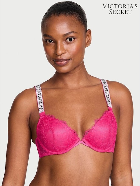 Victoria's Secret Royal Pink Add 2 Cups Push Up Bombshell Lace Trim Bra