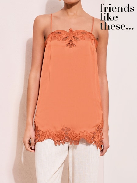 Friends Like These Deep Orange Longline Cami With Lace Trim