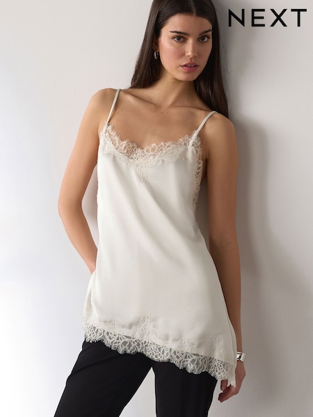 Hush Brown Marnie Asymmetric Lace Trim Cami