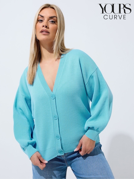 Yours Curve Blue Limited Balloon Sleeve Cardigan