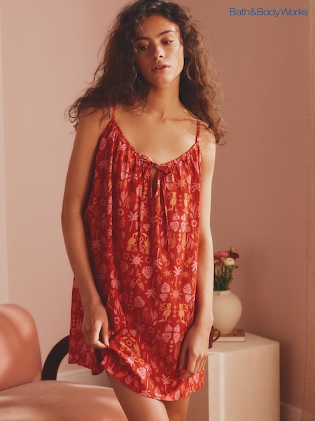 Bath & Body Works Pink/Orange Woven Cotton Slip Nightie