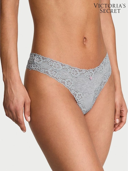 Victoria's Secret Medium Heather Grey Thong Cotton Lace Waist Knickers