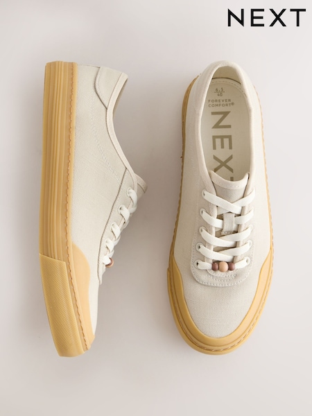 Greige Forever Comfort® Lace-Up Gum Sole Charm Trainers