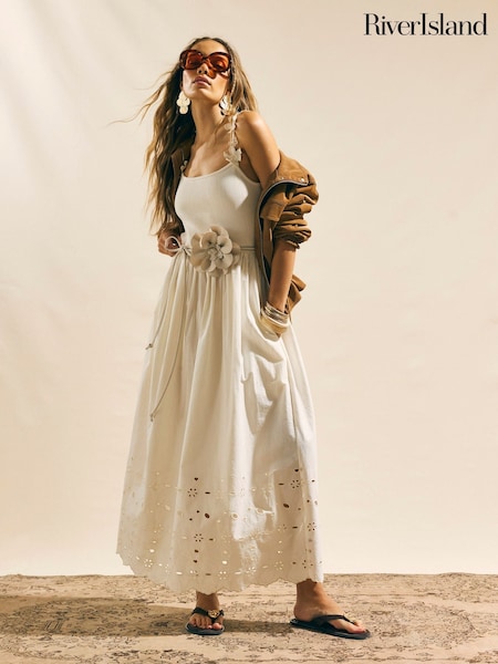 River Island Cream Poplin Cutwork Cami Maxi Dress