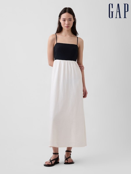 Gap Black/White Linen-Blend Empire Waist Maxi Dress