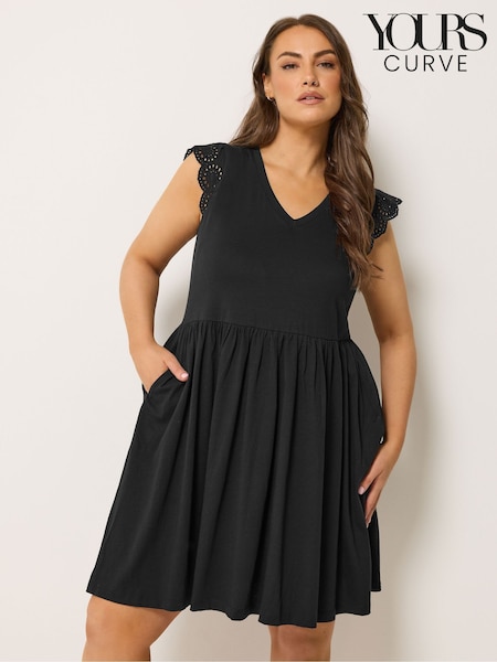 Yours Curve Black Broderie Sleeve Short Dress