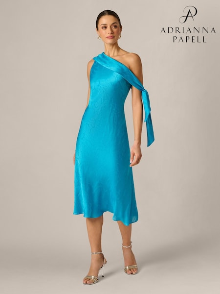 Adrianna Papell Blue Woven Jacquard Midi Dress