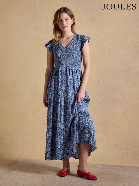 Joules Esme Blue Shirred Maxi Dress