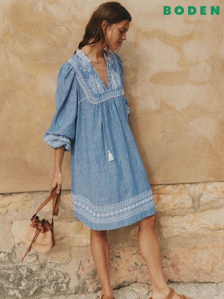 Boden Blue Carmen Linen Short Dress