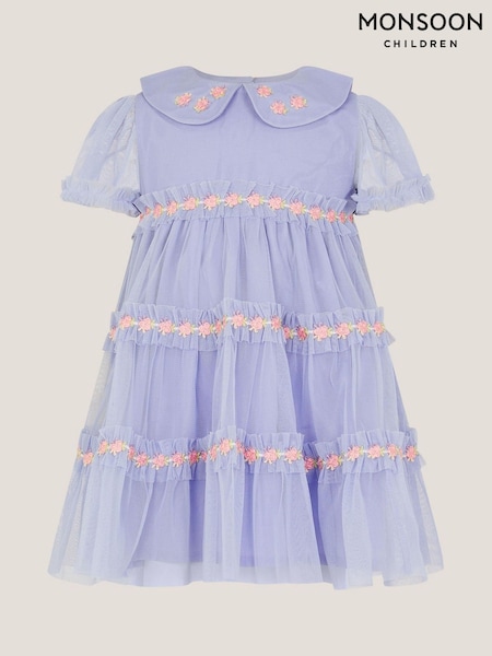 Monsoon Blue Baby Floral Embroidered Tulle Dress