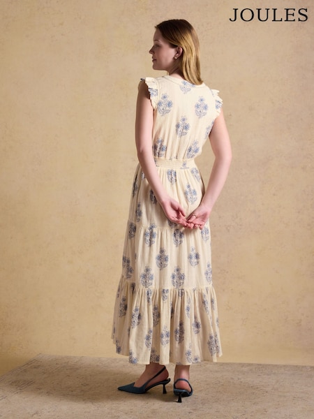Joules Penelope Cream Foulard Print V Neck Tiered Maxi Dress