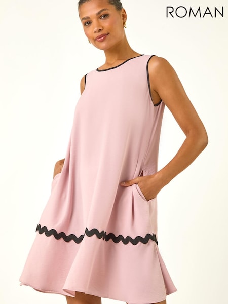 Roman Bright Pink Ric Rac Trim Swing Dress