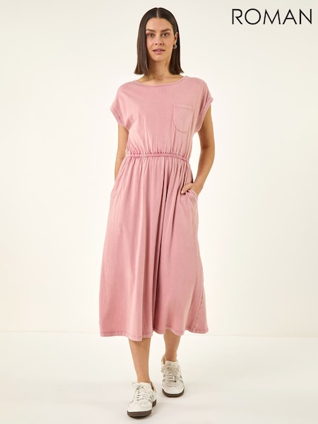 Roman Pink T-Shirt Pocket Detail Midi Dress