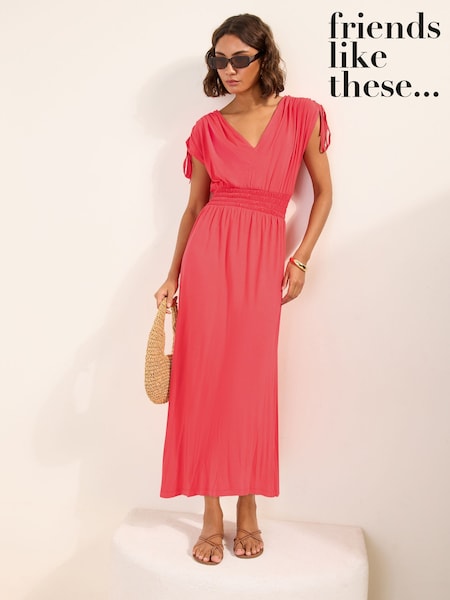 Friends Like These Pink Petite V-Neck Shirred Waist Jersey Maxi Dress