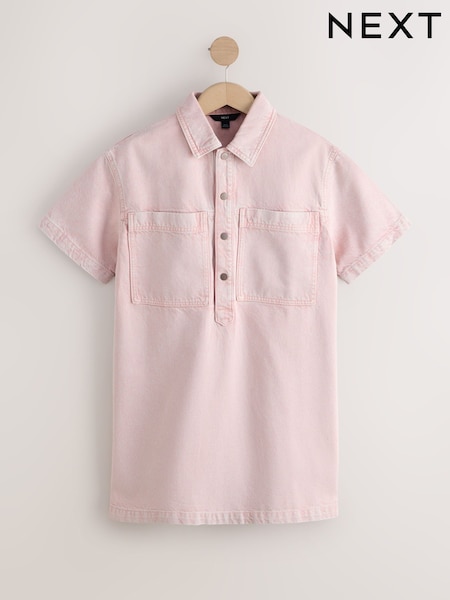 Light Pink Short Sleeve Utility Denim Mini Dress