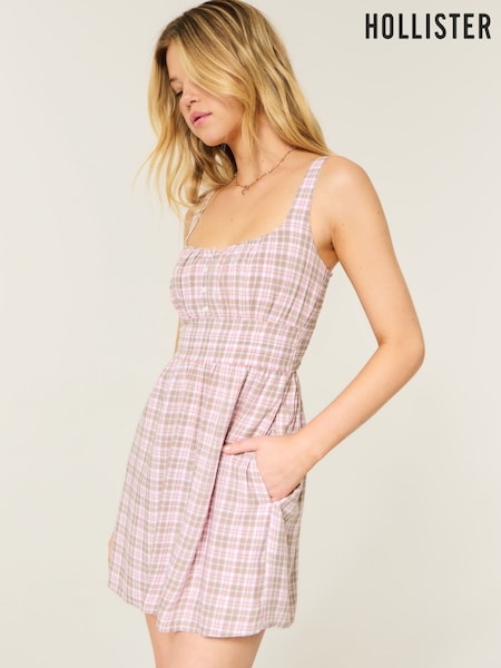 Hollister Pink Gingham Check Babydoll Mini Dress