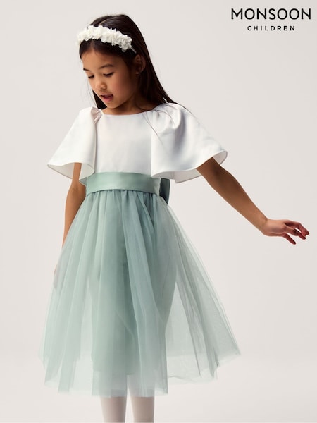 Monsoon Green Angelica Bow Tulle Flower Dress