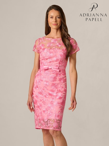 Adrianna Papell Pink Illusion Embroidery Dress