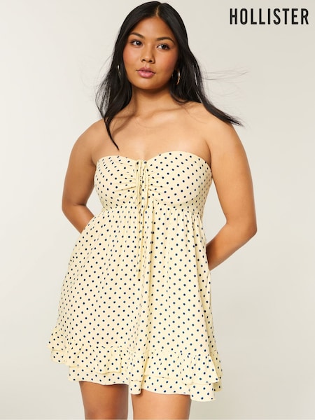 Hollister Yellow Strapless Ruffle Babydoll Mini Dress