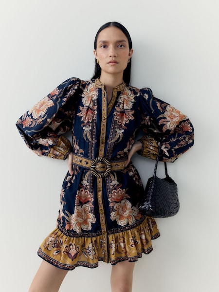 Farm Rio Black Majestic Garden Cotton Mini Dress