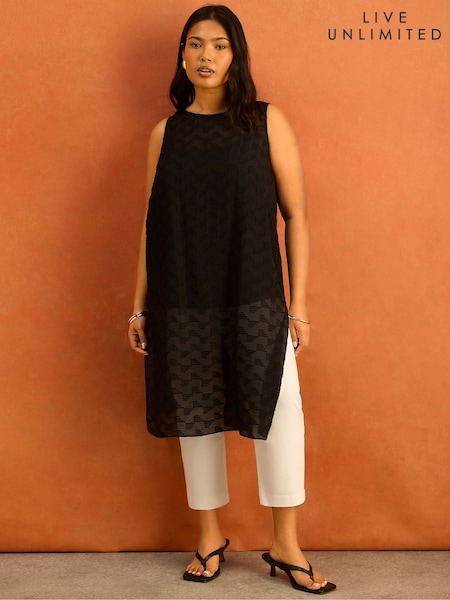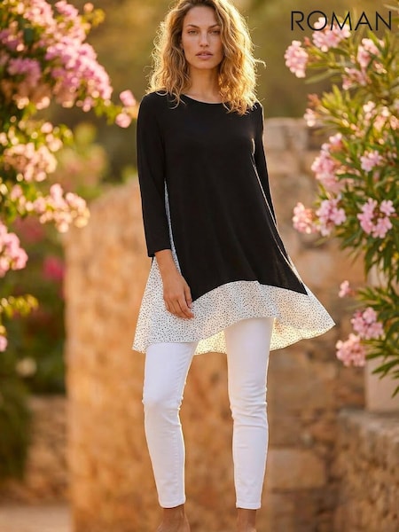 Live Unlimited Black Petite Ditsy Print Split Sleeve Tunic