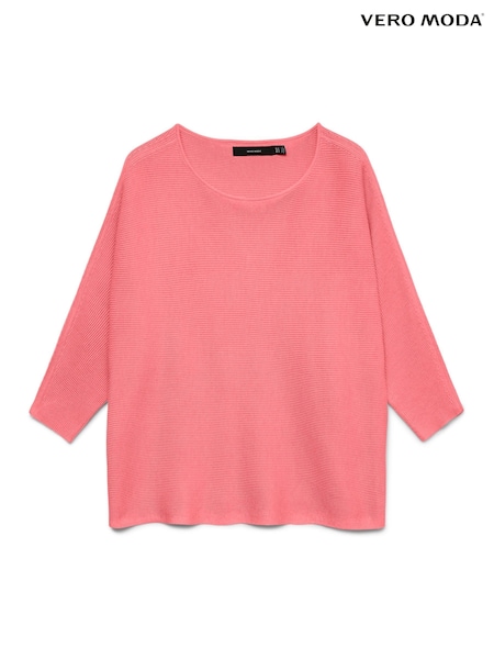 VERO MODA Pink 3/4 Sleeve Boat Neck Knitted Top