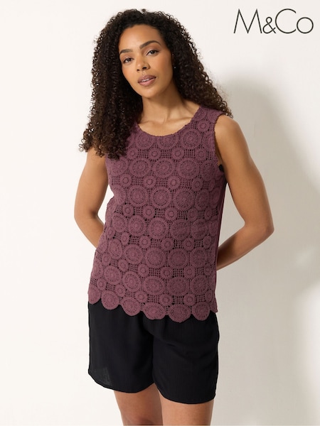 M&Co Purple Crochet Sleeveless Shell Print Top