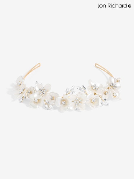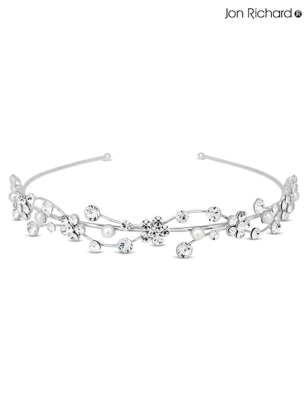 Jon Richard Silver Tone Plated Nina Crystal Flower And Pearl Waves Headband - Gift Pouch